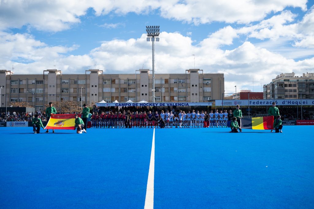 En el segundo partido de la jornada, la FIH Pro League estrenaba la categoría femenina en Valencia con un partido que enfrentaba a España y Bélgica. Un duelo que comenzaba con un primer cuarto muy disputado donde ambos equipos no pudieron sacarse diferencias en el luminoso. El conjunto belga estrenaba el marcador en el segundo parcial, con dos tanto consecutivos de Alexi Van Remortel y Louise Dewaet que ponías las cosas cuesta arriba para España. Sin embargo, el equipo de Carlos García Cuenca reaccionaba con un tanto de Flor Teves que dejaba a su equipo a un tanto del empate en el descanso.